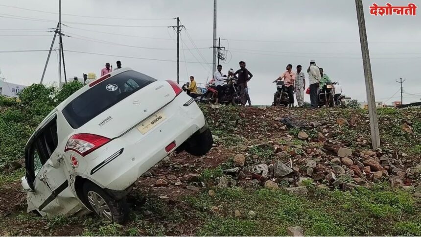 Parbhani accident :- परभणीतील जिंतूर तालुक्यातील जिंतूर – परभणी रस्त्यावरील औंढा टी पॉईंटवर मुसळधार पावसात(Heavy rain) एक चारचाकी वाहन रस्त्याच्या बाजुला जाऊन पलटी झाले. ही घटना १९ सप्टेंबर रोजी रात्री ९.३० च्या सुमारास घडली. अपघातात (Accident)दोघेजण गंभीर जखमी झाले. सुदैवाने या घटनेत कोणतीही जीवीतहानी झाली नाही.