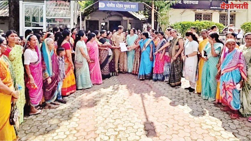 पुसद तालुक्यातील आदिवासी समाजातील शेकडो संतप्त महिलांचा डॉ. आरती फुपाटे यांच्या नेतृत्वात पुसद शहर पोलीस स्टेशनवर मोर्चा धडकला. महिलांनी संबंधित आरोपींवर तात्काळ अनुसूचित जाती, जमाती अत्याचार प्रतिबंधक कायद्यांतर्गत गुन्हा दाखल करून त्वरित अटक करण्याची निवेदन देऊन मागणी केली. तसे न झाल्यास समाज रस्त्यावर उतरून तीव्र आंदोलन छेडेल, असा इशारा डॉ आरती फुपाटे यांनी दिला. मोर्चात वर्षा वैद्य, शिल्पा भुरके, दुर्गा टारफे, मंजुषा बोंबले, छायाबाई पांडे, सुनीता मळघणे, शीतल ढगे, राधा हजारे, कमल इंगळे, निंबा भरकाडे, वर्षा उगले, अर्चना उगले, सुनिता पांडे, आशा भिसे, वंदना उगले, शालिनी पांडे, पंचफुला भुजाडे, अन्नपूर्णा काळे, लक्ष्मी पांडे, शकुंतला भिसे, लक्ष्मी बळी, मिराबाई काळे, कांता वायकुळे, कांताबाई बळी, मीरा बोडखे, अंकिता झळके, कविता वडगे, महानंदा मारकड, सुनिता जंगले, वर्षा दुम्हारे, विजया इंगळे, विभा भोरकाडे, कमल इंगळे, राधा हजारे, राधा इंगळे, सु. डी. खोकले, माला इंगळे, पुष्पा कुरुडे, रेखा टारफे, वर्षा डाखोरे, शीला ब्राह्मणकर, सुनिता वाडगे, कल्पना तितरे, मीनाक्षी चांदोडे, शितल कर्हाळे, शारदा सांडवकर, सौ. शा. ना. इंगळे, सुरा उघडे, नंदा उघडे, कमल उघडे, दुर्गा चिरंगे, संतोषी पिंपळे, सुचिता गायकवाड, सीमा वैद्य, कौशल्या ढाकरे, ज्योत्स्ना लोखंडे, सपना लांबटोंगळे, मनीषा दुम्हारे, ज्योती बेले, किरण हगवणे, जया वाघमारे, रेणुका कुरुडे, पूनम बोंबले आदी शेकडो महिला सहभागी होत्या.