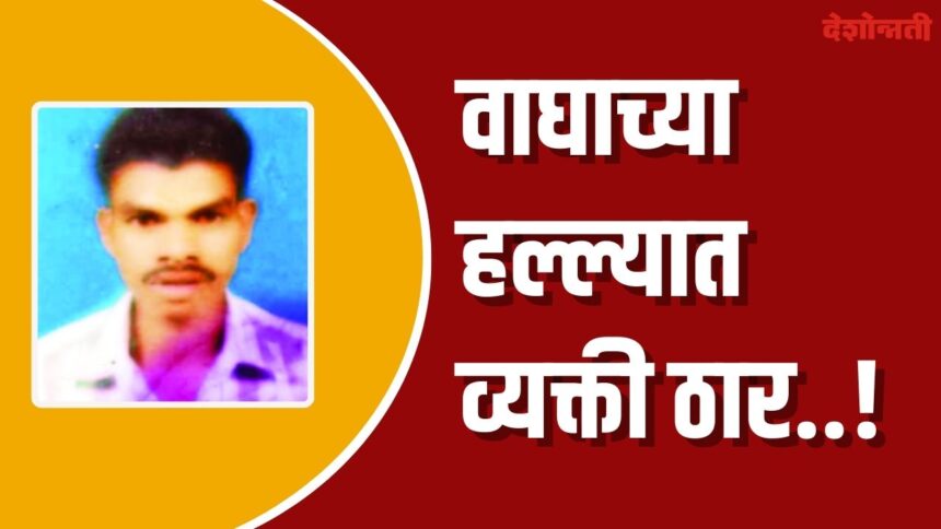 चंद्रपूर (Chandrapur) :- वाघाच्या हल्ल्यात व्यक्ती ठार (Death) झाल्याची घटना चिचपल्ली गावातील चेक पिंपळकु’ येथे १ मे २०२५ च्या रात्री १० वाजताच्या सुमारास घडली. मृतकाचे नाव दिवाकर बाबुराव जुमनाके (२७) असे आहे. दिवाकर जुमनाके हे त्यांच्या कुटुंबासह शेतात पूजा करत होते. तेव्हा अचानक ‘मामा’ नावाचा एक कुख्यात नरभक्षक वाघ (Tiger) तिथे आला आणि सर्वांसमोर दिवाकरला उचलून जंगलात घेऊन गेला.